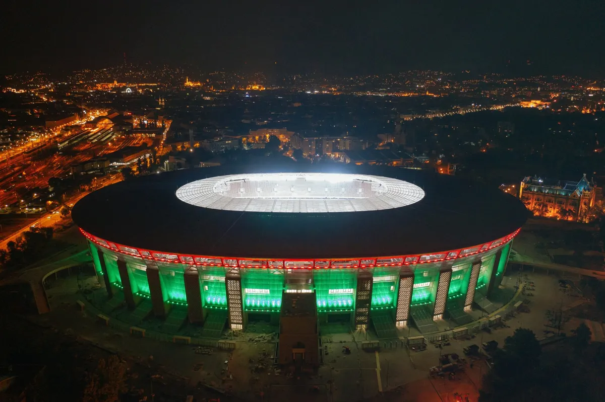Péntek este megtartották a korábban elmaradt teljes fénypróbát a Puskás Arénában, amelyben szinte az összes szék a helyére került, és a füvesítés is megkezdődött.