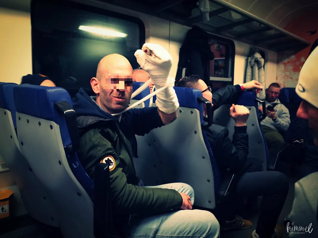 A pirotechnikai eszköz használata illegális az utcán, a drukker pedig éppen a fehérvári vasútállomáson próbált zajt kelteni a gránáttal. Az első hírek szerint a fiatalember három ujját elveszítette, azonban információnk szerint csak egy ujjperce sérült meg. A mentősök azonnal a fehérvári kórházba szállították, s a kezelés olyan jól sikerült, hogy a sérült férfi már ott volt a második félidőben a lelátón. Hazafelé pedig már a társaival utazott a vonaton.