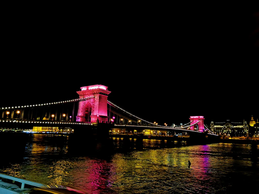 A helyszíneket rózsaszín fénnyel világítják be, a Lánchídról küldött képet egy olvasónk.