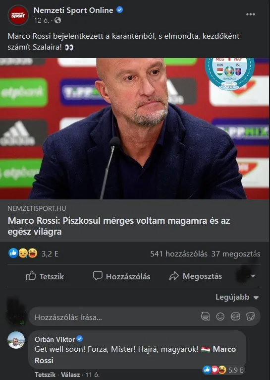 Orbán a Nemzeti Sport egy bejegyzéséhez szólt hozzá: