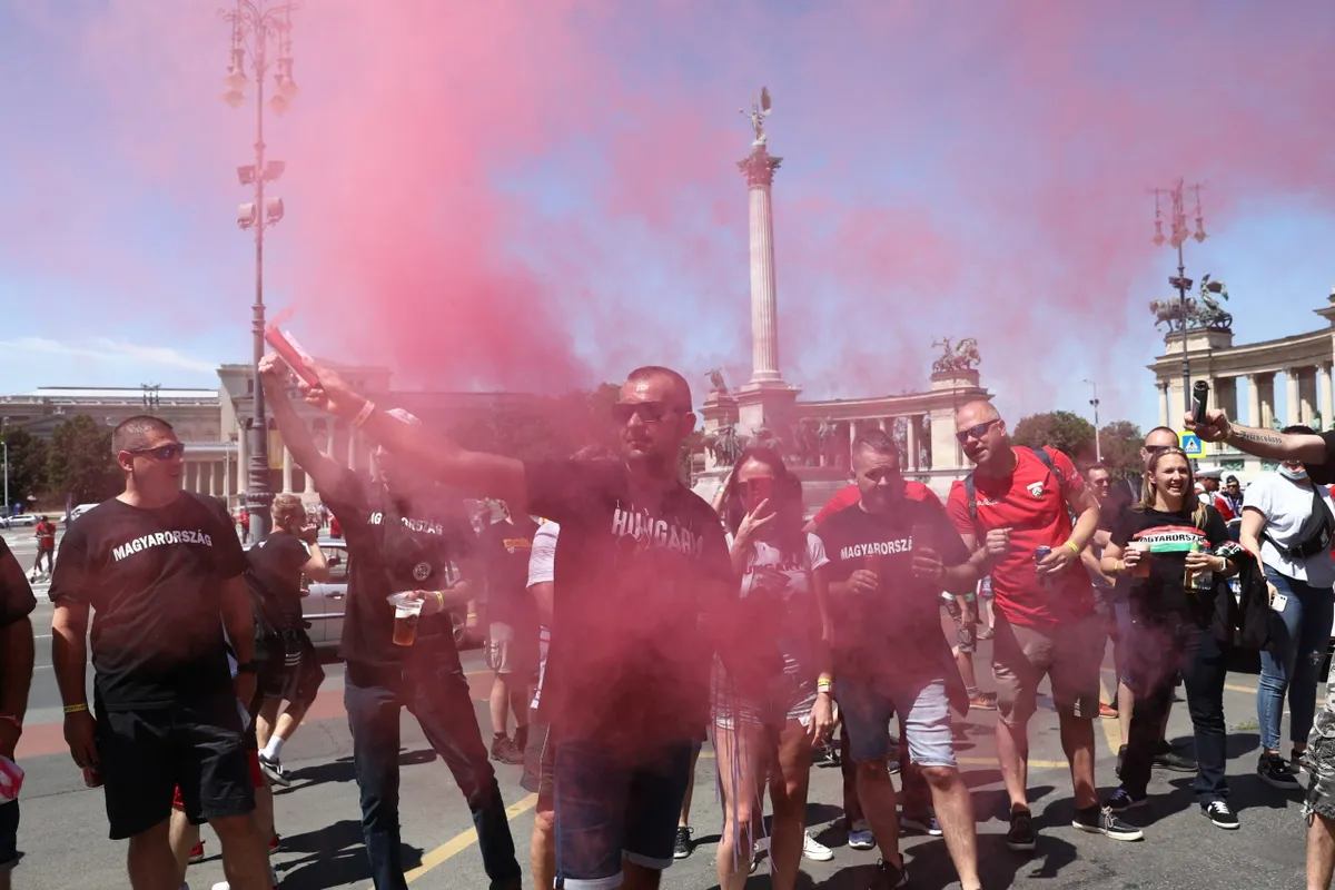 Kedden kora délután már óriási hangulat uralkodott Budapest utcáin, a szurkolók a 18 órakor kezdődő Magyarország-Portugália Európa-bajnoki mérkőzésre hangoltak.