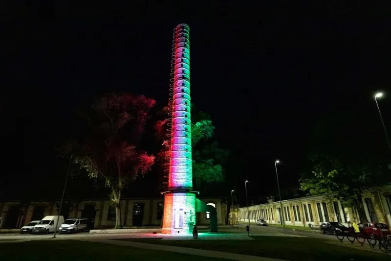 Mozdonycsarnok 327-es gőzösének „arcát” kipingáltuk, de a parkban álló fénykémény lesz igazán feltűnő a szerdai éjszakában. Hajrá magyarok! – üzeni a leghangosabb szurkoló, az Opera!