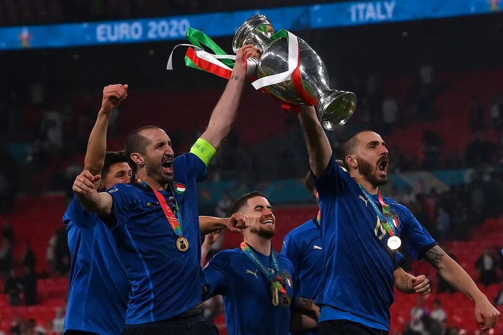 A már 34 meccs óta veretlen Squadra Azzurra – és klubcsapatuk, a Juventus – védelmének két oszlopa, az egyenlítő gólt szerző Leonardo Bonucci és Giorgio Chiellini együtt már 70 évesek és 221-szeres válogatottak. Mégis úgy ünnepeltek, mint két csintalan kamasz.