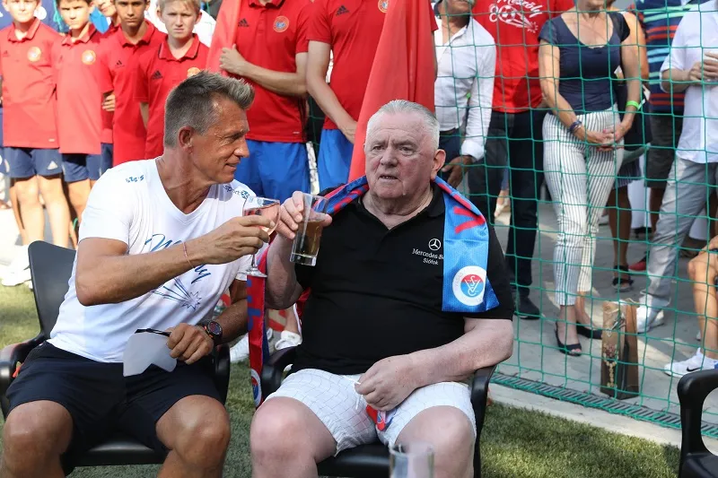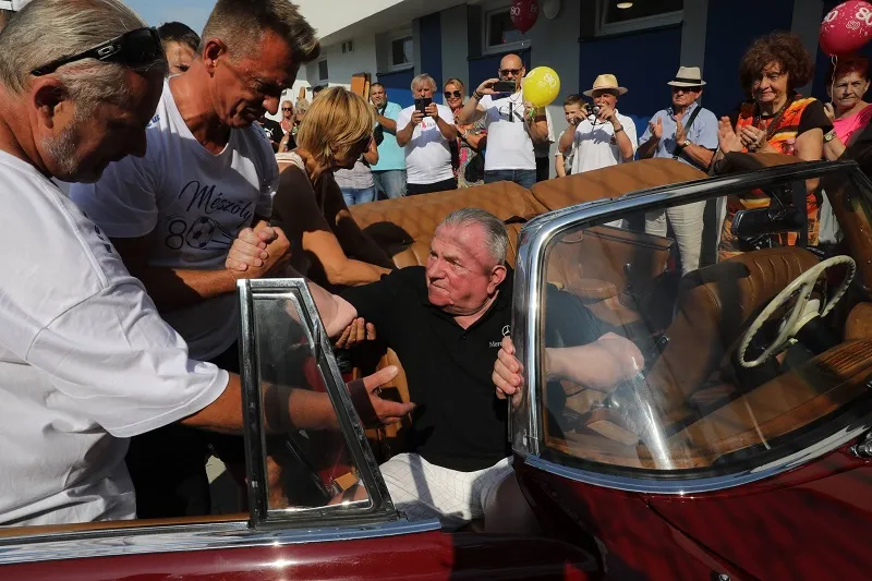 Hatalmas társaság, mindegy 200 vendég várta a Mészöly Focisuli csillaghegyi pályáján az egykori 61-szeres válogatott Mészöly Kálmánt, aki pályafutása során edzőként és szövetségi kapitányként is alkotott. A 80. születésnapját ünneplő legenda egy oldtimer Mercedes kabrióval érkezett a bulira.