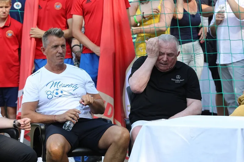 „Nem tudta, hogy ennyien eljönnek – mondta a Borsnak az ünnepelt kisebbik fia, Mészöly Géza. – A tiszteletére az Irigy Hónaljmirigy írt egy számot, Koós János egyik dalát dolgozták fel, Kapitány a címe. Ebben összefoglalták a karrierjét, a válogatottal és a Vasassal elért sikereit, minden jelentős pillanatát megemlítették. Persze túl sokáig nem terheltük őt, előre szóltam a többieknek, hogy maximum egy órát lehet ott a fater, mert pihennie kell.”