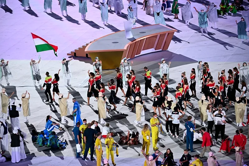 Közép-európai idő szerint 15 óra után bevonult a magyar csapat az Olimpiai Stadionba a tokiói nyári játékok megnyitóján.