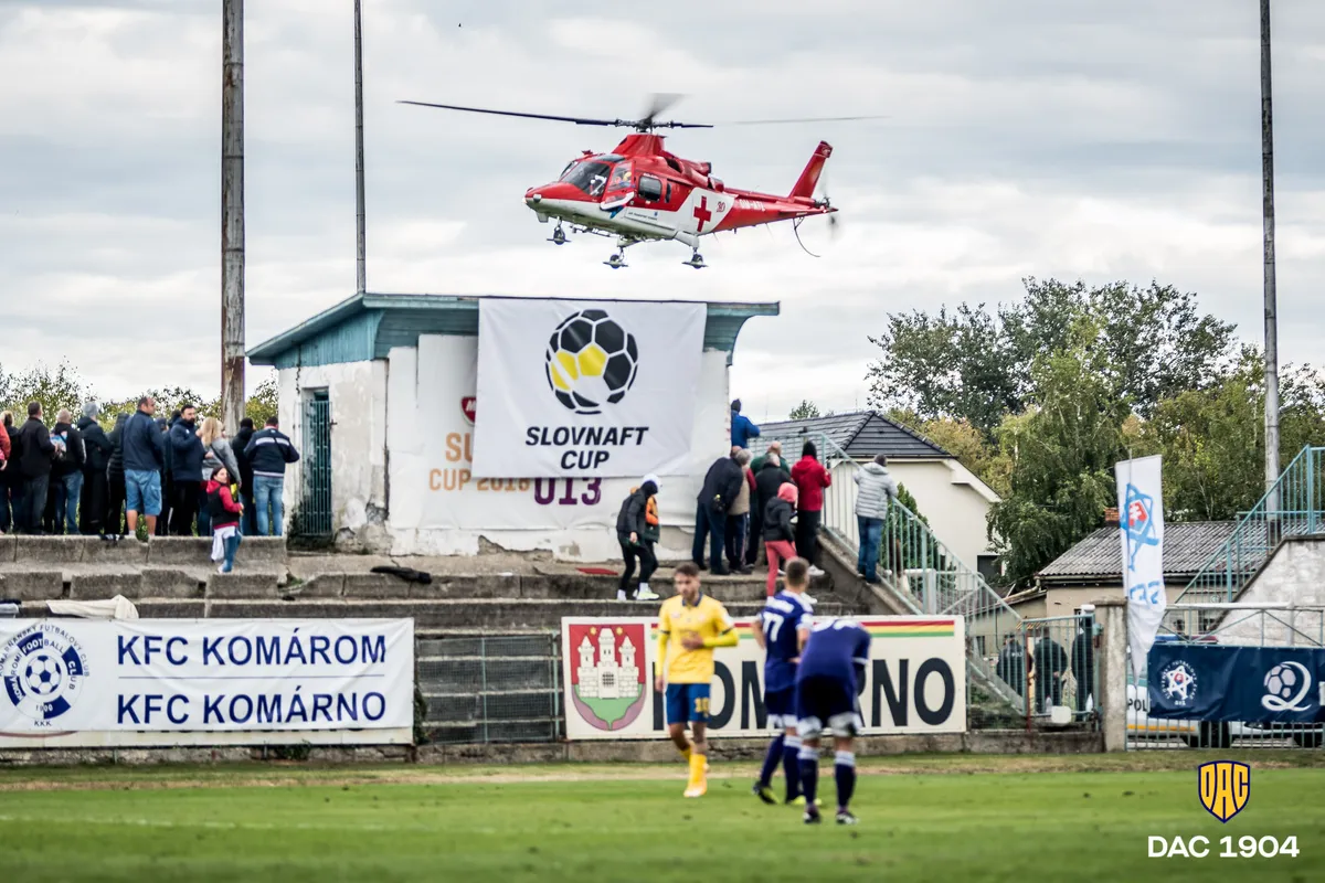 Borzalmas sérülés borzolta a kedélyeket Szlovákiában a Dunaszerdahely-Révkomárom labdarúgó-kupameccsen. A hazaiak játékosa, Sainey Njie saját csapattársával fejelt össze, s olyan súlyos koponyasérülést szenvedett, hogy azonnal mentőhelikopter szállította a kórházba.