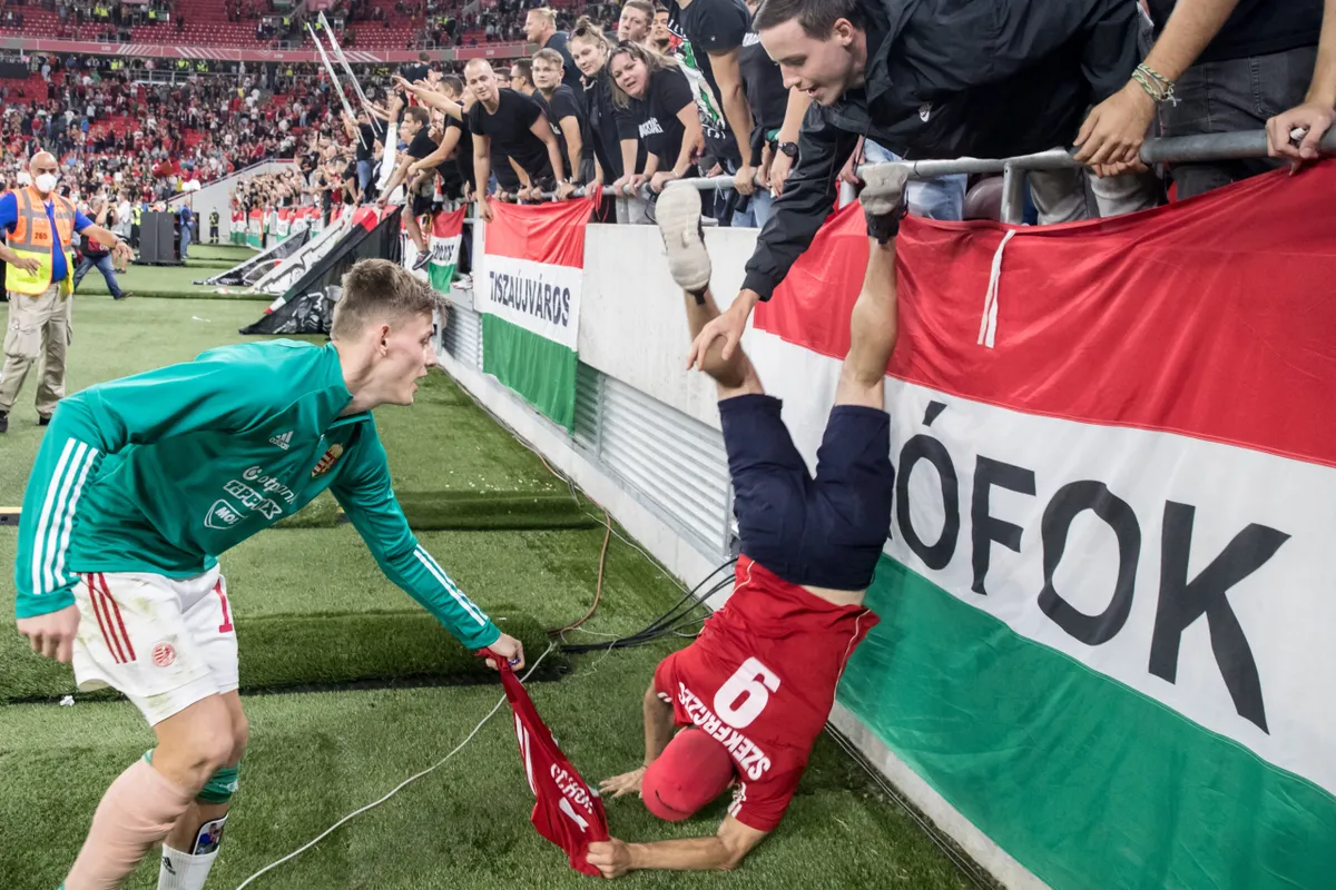 Ugyan gyengébben szerepelt a szeptemberi selejtezőkön a fociválogatott, a csapat játékosai így is népszerűek a szurkolók körében. Az Andorra elleni 2-1-es sikert követően a kezdőcsapatba jelölt Schön Szabolcs próbált odaadni a mezét egy drukkereknek, aki a nagy igyekezetében konkréten kiesett a szektorából és fejreállt.