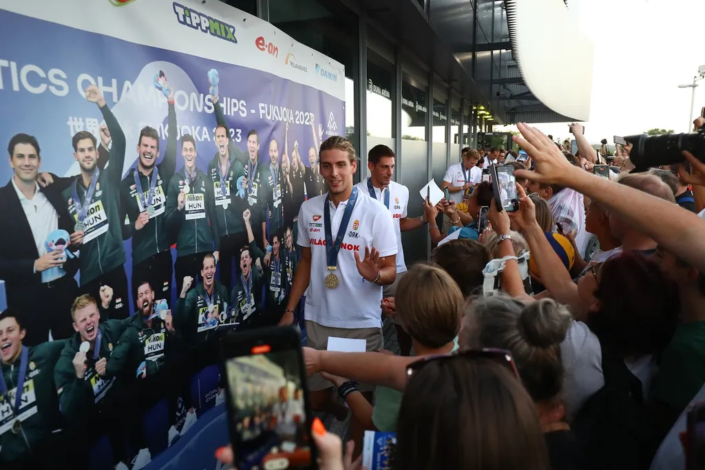 A Duna Arénában több száz szurkoló fogadta a vizes vb aranyérmes pólósait.