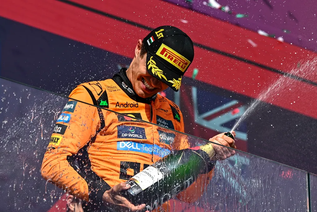 A dobogón már persze önfeledt volt az ünneplés, s Lando Norris most jó előre elpakolta a Herendit a pezsgőzés előtt. Két éve ő volt az, aki véletlenül összetörte Max Verstappen porcelánját.