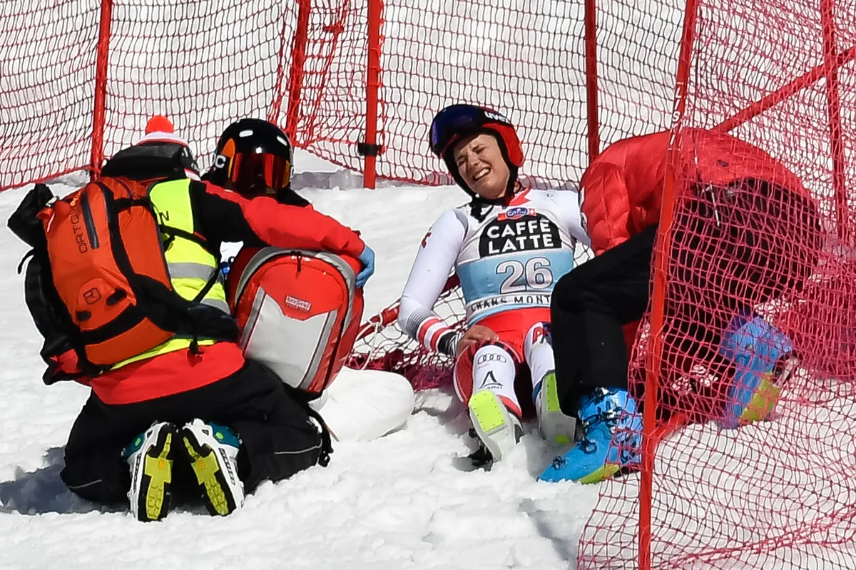 Elsőre nem tűnik súlyosnak a sérülés, de nagy fájdalmai voltak az osztrák sportolónőnek.