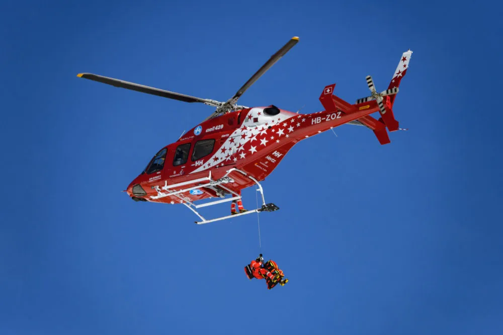 A fájdalomtól sikító, 23 éves sízőt mentőhelikopterrel szállították egy sioni kórházba.