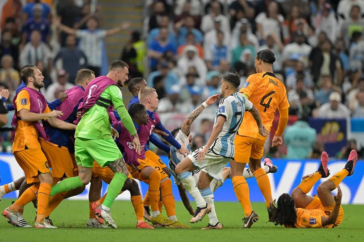 A tömegverekedés "kemény fiúja" végül a hollandok csapatkapitánya lett, Virgil Van Dijk testével úgy lökte el a tahó argentint, hogy az el is szállt.