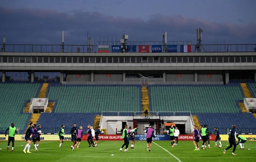 A 70 éve átadott stadiont legutóbb 2015-ben kezdték felújítani, ám ez, mármint a felújítás ténye – ahogy a felvételen is látható – nem egyértelmű. Az Origo munkatársa nyugodtan be tudott sétálni a pályára is. A helyi szövetség innen akarta Plovdivba vinni a csütörtöki Eb-selejtezőt, végül mégis Szófiában lesz a meccs