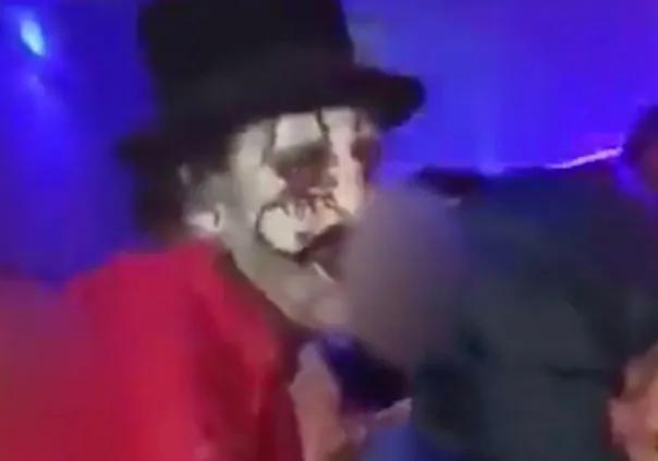 A rémisztő maskarába öltözött színész észrevétlenül a lány mögé lopakodott, majd a kerítéshez nyomta és fogdosni kezdte.