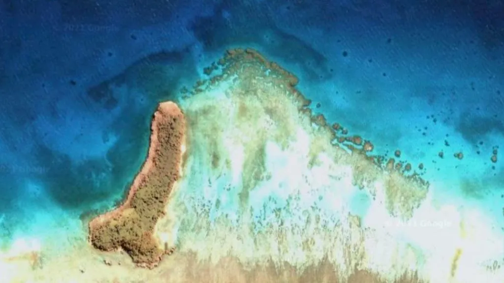 A pajzán alakú földrajzi képződmény a új-kaledóniai Szentháromság-szigethez tartozik, és igen aprócska.
