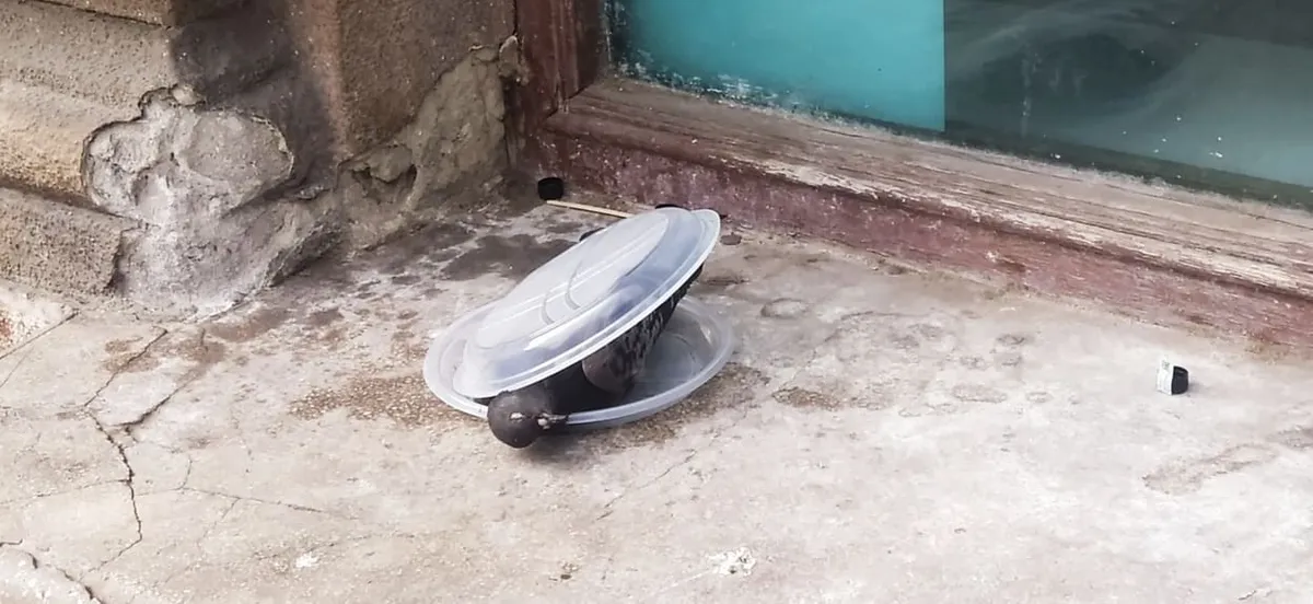 Már szinte a Ferenc körút sarkára ért, amikor megpillantott egy elhullott galambot, gyakorlatilag tálalva és lefedve egy másik műanyag tányérral.