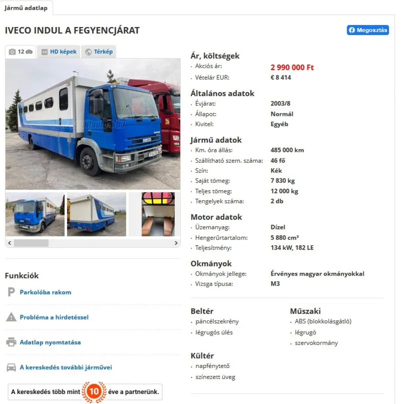 Különleges, megmosolyogtató hirdetés tűnt fel az egyik használt autókat értékesítő portálon. A kereskedő cég nem mást kínál eladásra, mint egy 46 férőhelyes, tavaly teljesen felújított rabszállító (!) autót, ami tökéletes váltóval és karosszériával rendelkezik.
