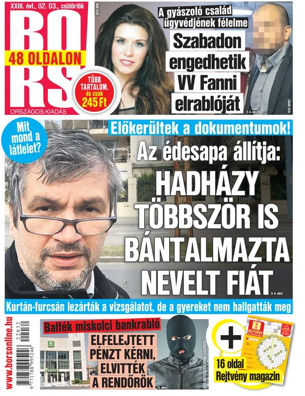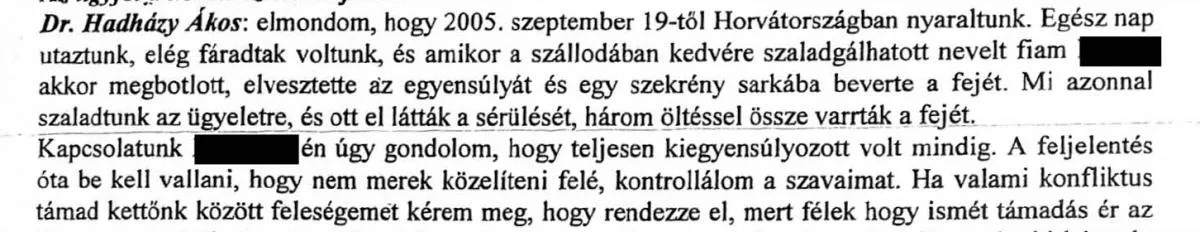 Előkerültek azok a dokumentumok, amik abban az időben keletkeztek, amikor Hadházy Ákos úgy megverte nevelt fiát annak édesapja szerint, hogy össze kellett varrni a fejét, sőt az édesapa azt állítja, nem is egyszer bántalmazta a gyereket.
