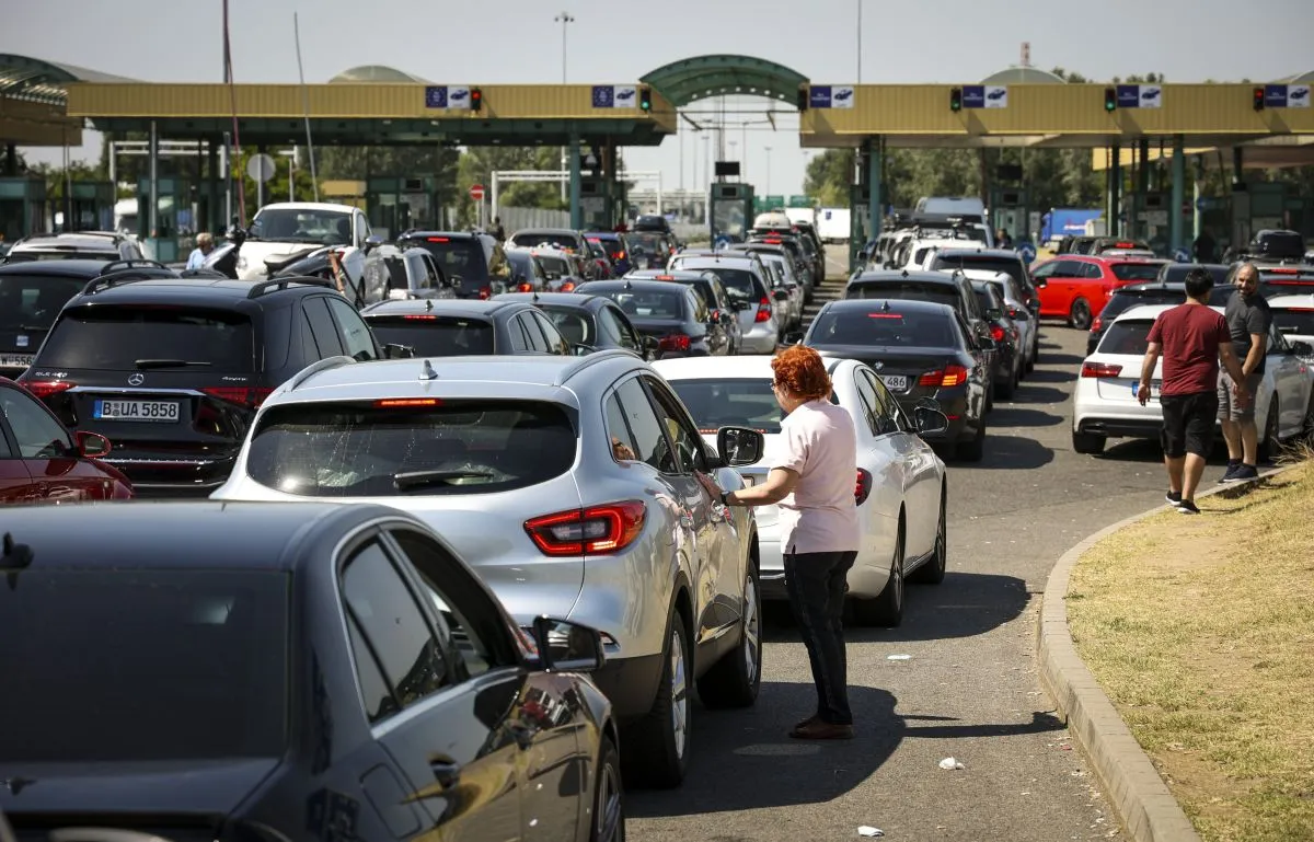 Két órát kell várakozniuk a Szerbia felől személygépkocsival érkezőknek a röszkei közúti határátkelőhely belépőoldalán is.