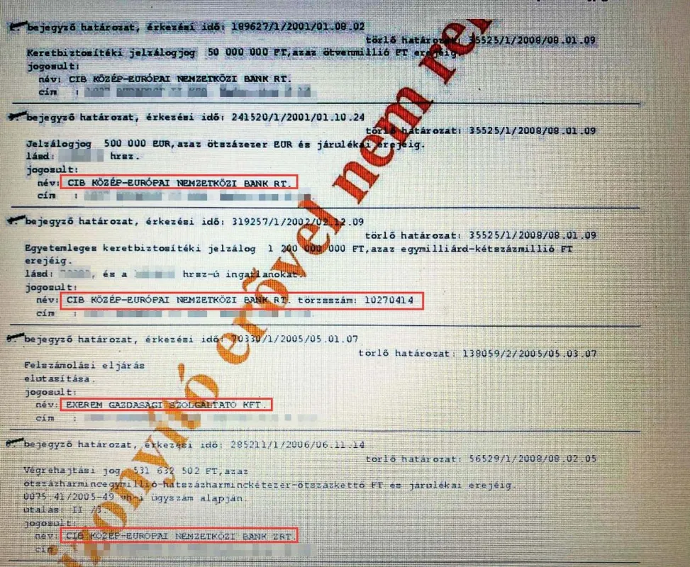 Igazi kordokumentum a luxusvilla tulajdoni lapja, így született a vörösbárók vagyona. Kiderül belőle például, hogy az ingatlanra egyetemleges keretbiztosítéki jelzálogot jegyeztek be 1,2 milliárd (!) forint erejéig. Egy olyan cég nevében, amelyben irányítást biztosító befolyással rendelkezett a hírhedt Belize-ben (lásd Bróker Marcsi rejtekhelye…) bejegyzett ANGLO-EUROPEAN Finance Corporation (BZ Belize, Belize City, 60 Market Square P.O. 364), de jelentős befolyással bírt a cégre az oregoni Torne Corporation (Oregon 97230-6660, Portland, 465 NE 181 st. Ave), sőt a cég tagja volt a Seychelle-re bejegyzett BONTON Enterprises Ltd. (SC Victori, Mahé Seychelles, CrystalOffices) is.
