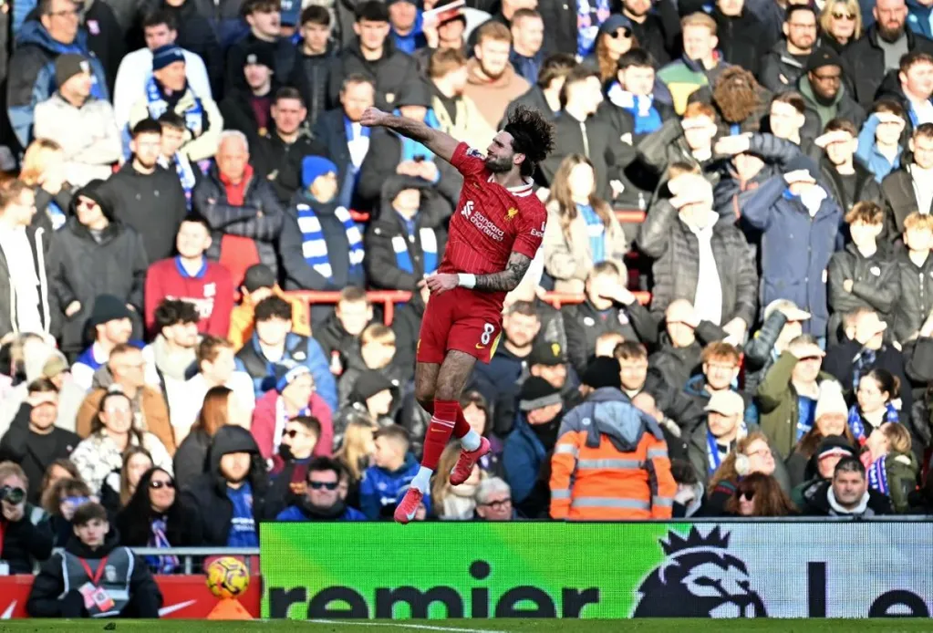 Szoboszlai Ibrahima Konate átadása után a tizenhatoson túlról szerezte meg szezonbeli harmadik bajnoki gólját.