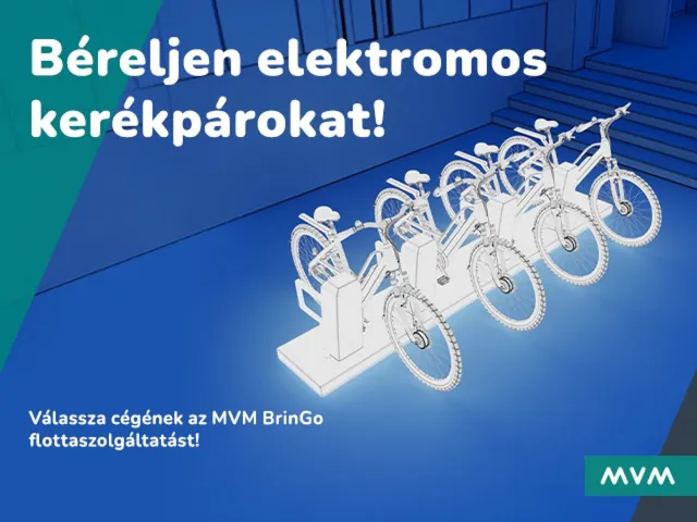 Az MVM Home&Pro társasági ügyfelei elektromoskerékpár-flottát is bérelhetnek. Az MVM BrinGo szolgáltatás szintén elősegítheti a fenntarthatósági követelményeknek való megfelelést, vállalkozások estében pedig szja-mentes juttatás, illetve költségként való elszámolhatóság lehetősége is fűződik hozzá. A havidíj magában foglalja a bérleti díjon túl a lopáskár elleni biztosítást, a szervizszolgáltatás, valamint más, igény szerint választható szolgáltatások költségét is (asszisztencia, cserekerékpár a szerviz idejére, gumiabroncs-átalány, kerékpárdokkoló).