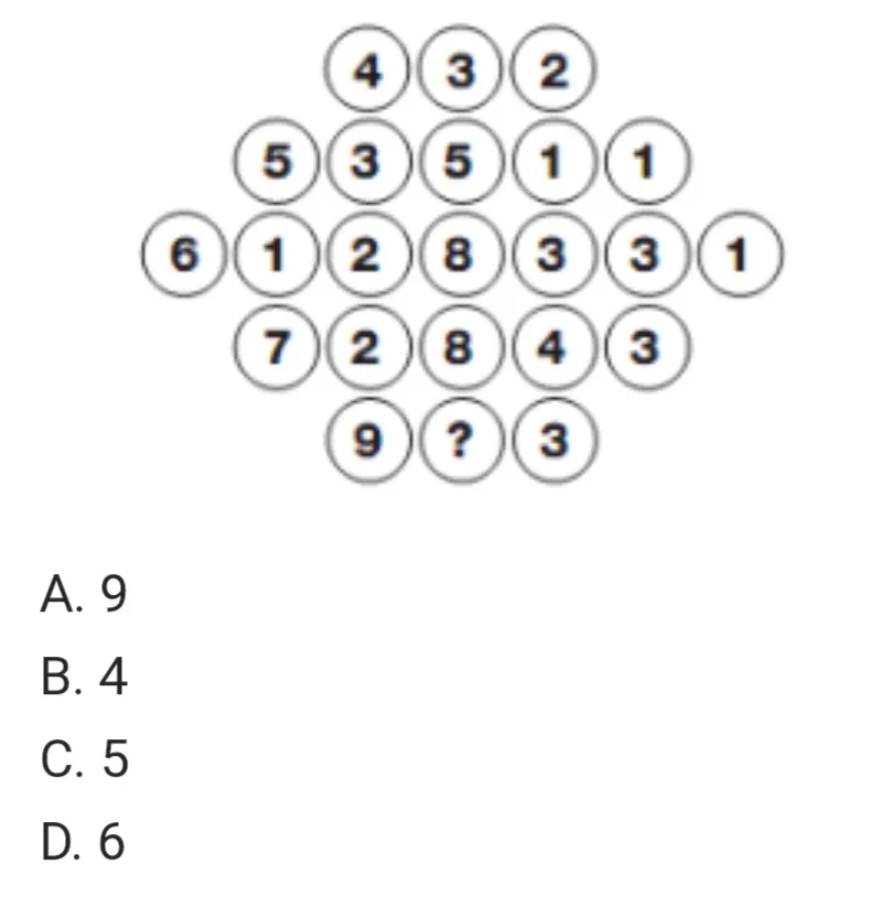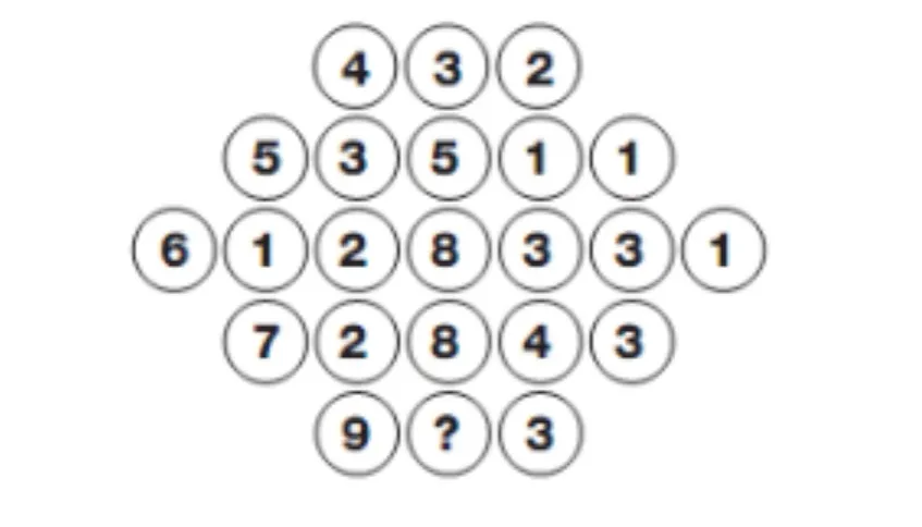 Ezen az ábrán sok-sok számot látsz, akad viszont rajta egy olyan karika, amelyben kérdőjel szerepel. A te feladatod természetesen nem más, mint rájönni, milyen szám kerül a kérdőjel helyére a helyes megoldás szerint...