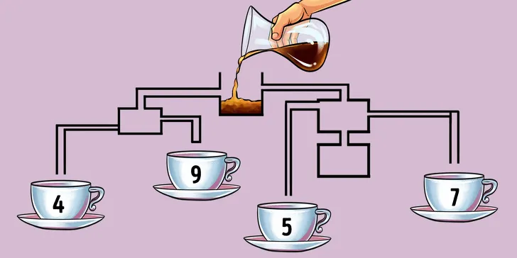 Ahogy láthatod, egyedül az 5-ös csésze az, amelyhez el tud jutni a kávé. A többi bögrének esélye sincs.