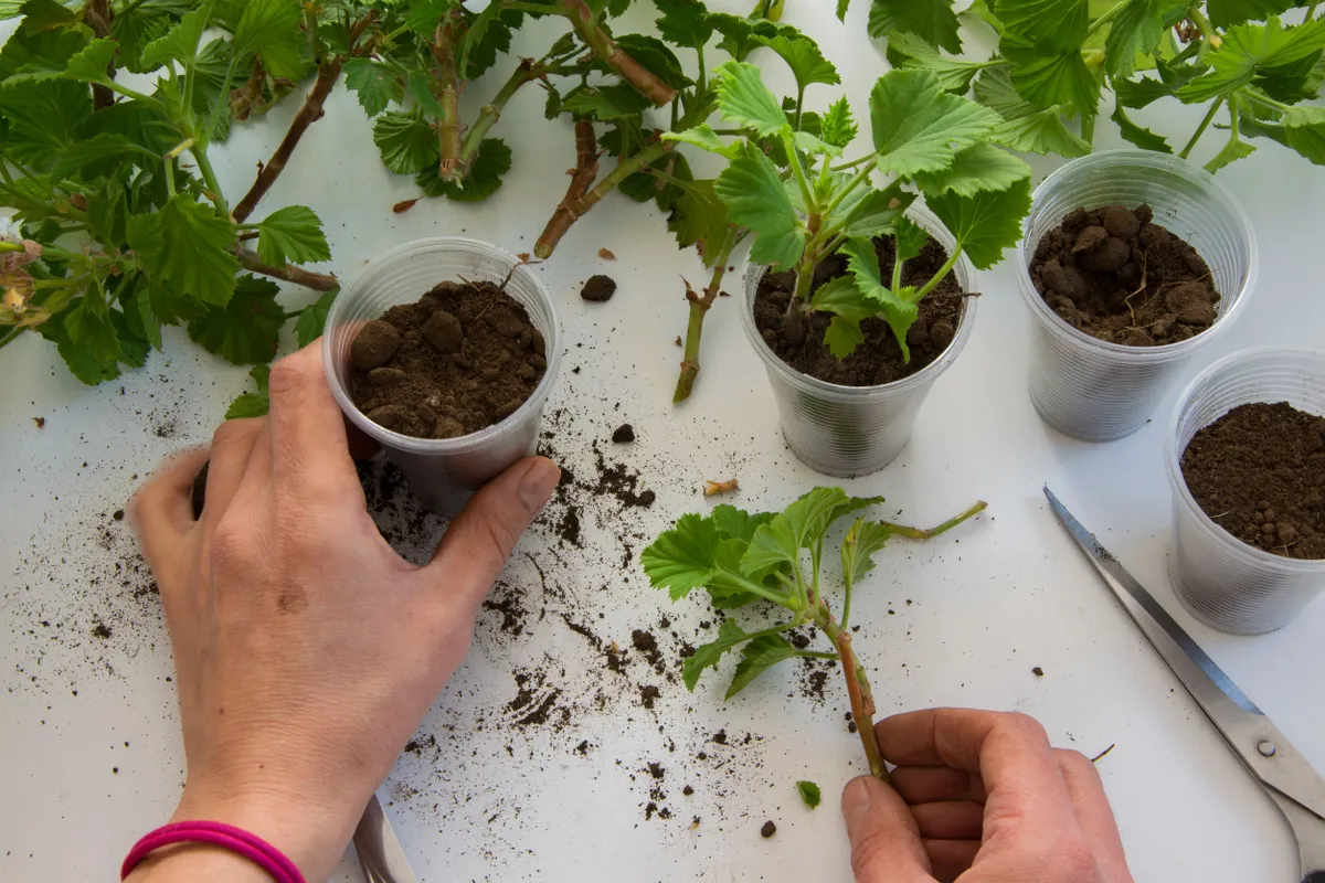 Az egészséges muskátliról éles késsel vágjunk le erős, 12-20 cm hosszú hajtásokat, úgy hogy az alsó szárcsomó alatt hagyjunk még 1 cm szárat. Csak teljesen egészséges, friss és erőteljes dugványok alkalmasak a gyökereztetésre. A virágos vagy bimbós hajtások nem alkalmasak szaporításra.