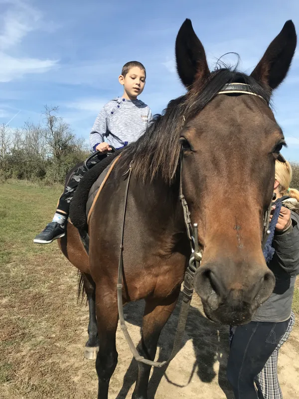 Igaz, a Lions Club részéről csaknem ugyanannyi felnőtt segítő csatlakozott a túrához, mint ahányan a gyerekek voltak, így mindenki meg tudta fogni valakinek a kezét, ez nagy biztonságot ad, pláne ismeretlen terepen. Nem is kellett senkit biztatni, hogy lóra üljön, mindenki első akart lenni.