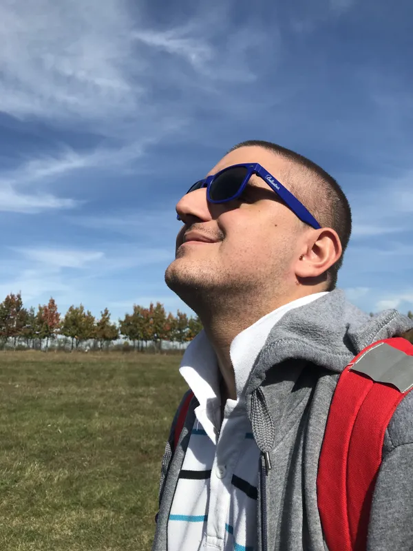 Márk az egyik legidősebb a csapatban, sötét szemüveget hord. Azt mondja, mindennél jobban várta a mai napot. Ő is az ég felé fordítja a fejét.