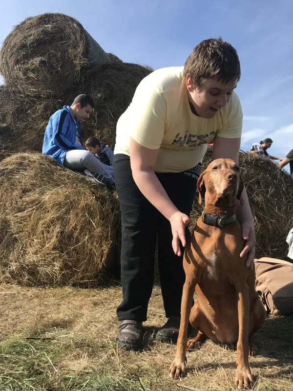 Kényelmesen elhelyezkedik, de azért erősen kapaszkodik, arcát az ég felé fordítja. „Olyan finom, meleg, ahogy süt a nap. Milyen színű ez a ló?” – kérdezi, s amikor megtudja, hogy barna, azt mondja nagyon szép, biztos nagyon szép. Elindulunk. Zsazsa beszél magáról, az otthonáról, ami nem az intézet, ahol egyébként szeret lenni. Az otthona és a családja Csanyteleken van, kéthetente viszik haza...