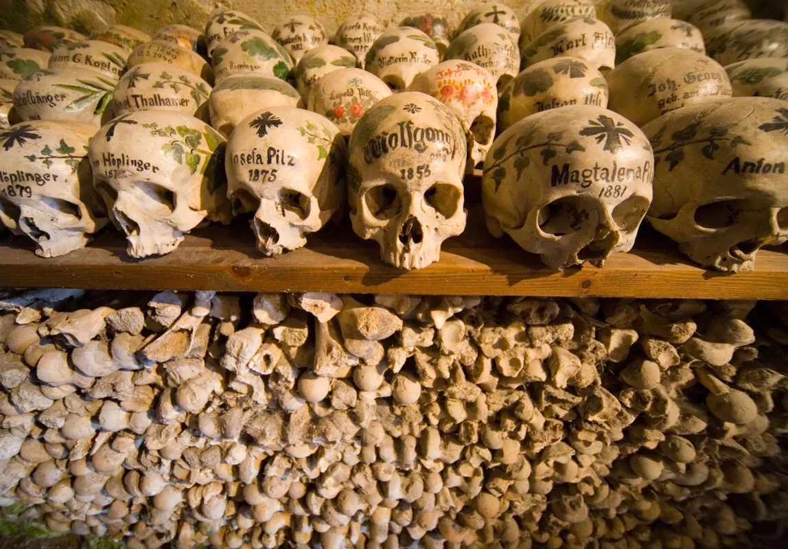 Hófödte hegycsúcsok ölelésében található az osztrák városka, Hallstadt, melynek legfontosabb látványossága a Mária mennybemenetele templom. Egész pontosan a mellette lévő temetőkertben található, 17. századi csontház. Itt sorakoznak a temetőben el nem férő elhunytak koponyái: szám szerint körülbelül 700 mívesen kifestett és 500 dísztelen.