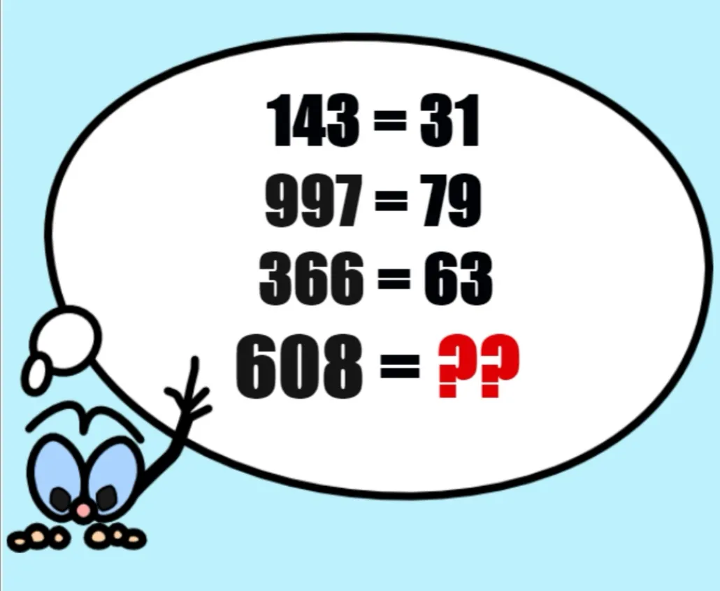 143 esetén: 1 4 3 a külön számjegyek sora, ebből az utolsó és első számot egymás mellé helyezve megkapod a 31-et. 997 esetén: 9 9 7 a külön számok sora, így megfelelő egymás mellé helyezve megkapod a 79-et. A megfejtés tehát 86.