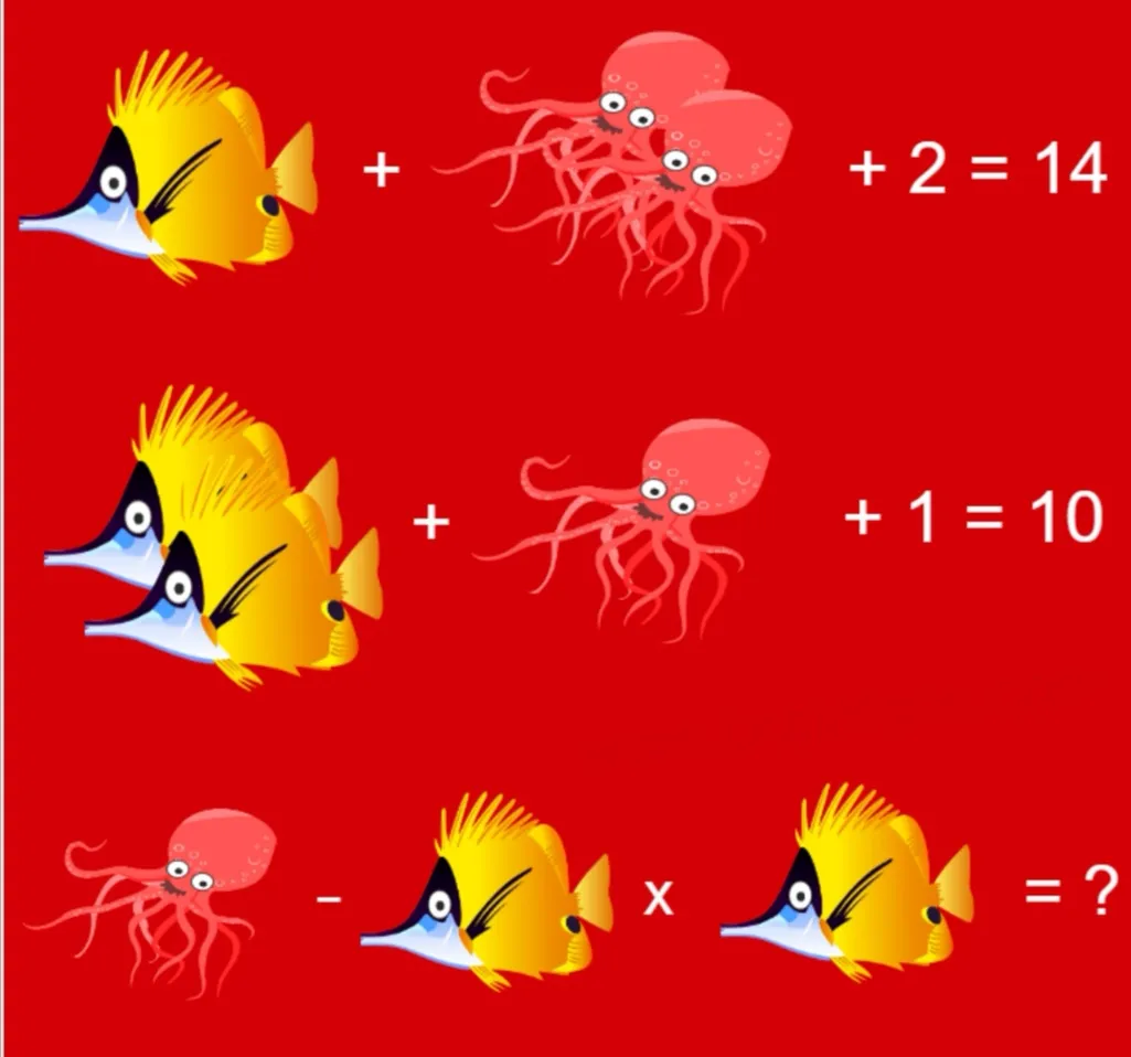 És ha már így belejöttél a játékba, akkor mutatunk még egy izgalmas rejtvényt! Itt is a kérdőjelet kell számjeggyel behelyettesítened, csakhogy ezúttal rá kell hozzá jönnöd, vajon mennyit ér a polip és mennyit a hal…
