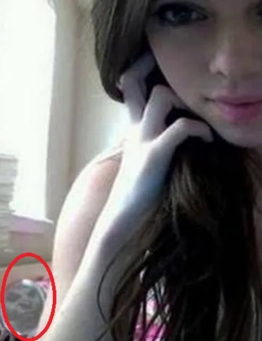 Mutatjuk kicsit nagyobb segítséggel. Ha esetleg nem tűnt fel, akkor így már jól láthatod: a háttérben lévő tükör valami nagyon aggasztó ábrázatot mutat. És a lánynak fogalma sincs, hogy mi lehet az. Állítása szerint ő maga legalább annyira megijedt, mint azok, akik felhívták erre a figyelmét. Nem csoda, hogy azóta sokkal nehezebben jön álom a szemére...