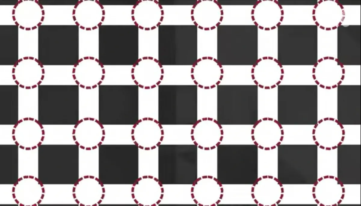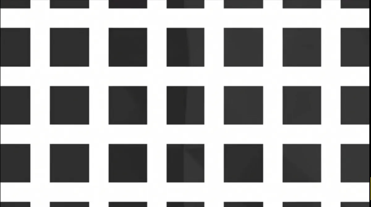Ez tipikusan jó példája azoknak az optikai illúzióknak, amikor a szem becsapja az agyat. Ha egyetlen pontra nézel, akkor a körülötte lévő „útkereszteződések” szürke köröket rajzolnak ki. Azonban azok nincsenek ott a valóságban, csak a kontrasztok és formák játszanak az elméddel.