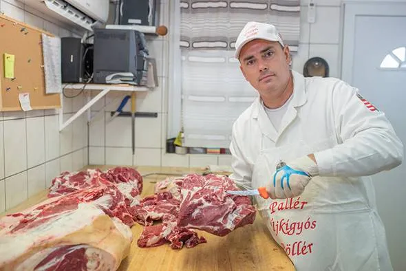 – Édesapám is sertéstartó volt plusz természetesen gazdálkodó is. Sokat járunk együtt disznót vágni, a csúcs 115 volt egy évben, pontosabban egy szezonban. Mert igazából csak október elejétől március végéig vágtunk – emlékszik vissza, hozzátéve, a legerősebb napon három helyen is voltak. Persze ez csak úgy jöhetett ki, hogy nem mindenütt abáltak és készítették el az összes töltelékárut, a rizses hurkától a kolbászig bezárólag. Ahogy fogalmaz, volt, hogy csak az asztalra kellett tenni valamennyire részekre szedve az állatot.