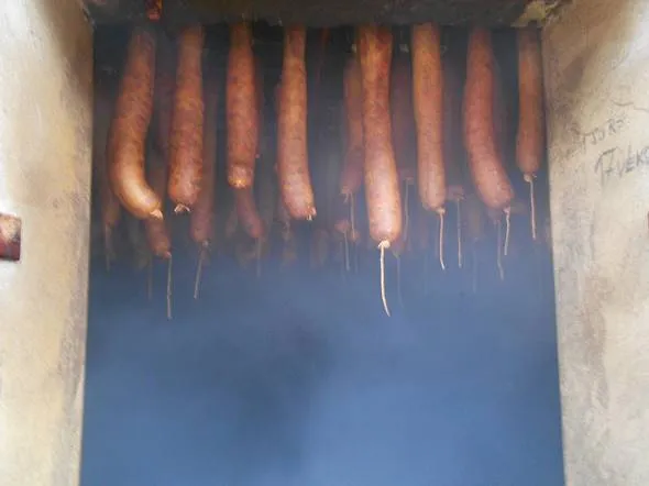 – A kolbászkészítés titka a jó alapanyag, mi is nevelünk disznókat – persze nem itt, a háznál, a feldolgozónál és mindenre nagyon odafigyelünk. Fontos a minőségi fűszer is. Száz százalékos tisztaságú sót, aromatasakban lévő köménymagot, újkígyósi házi paprikát és Baranyi József barátomtól Makóról beszerzett fokhagymát használok. Magam füstölöm a portékát, régóta egy helyről hozom a fűrészport, a bükk mellé egy kis tölgy is mehet. Lényeg, hogy hazai erdők magyar fáinak tisztított, olajmentes fűrészporát használjuk. A terméket vályogfalú, szellős kamrában tárolom, és folyamatosan odafigyelek rá. Titok igazából nincs, csak a kolbász, a kolbászkészítés szeretete. Az, hogy szívvel-lélekkel csinálom, de ezzel sokan vannak így Békés megyében – mondja. Természetesen semmilyen lékötőt, érlelés gyorsítót nem használnak.