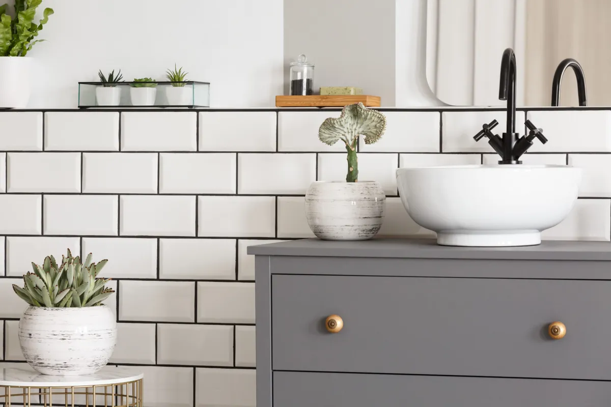 Ha nincs elég bátorság, vagy kellő tőke épp kéznél, olcsón is megúszhatjuk a fürdő felújítását. Fessük feketére a fugát a fehér csempével burkolt falon. Zseniális a végeredmény!