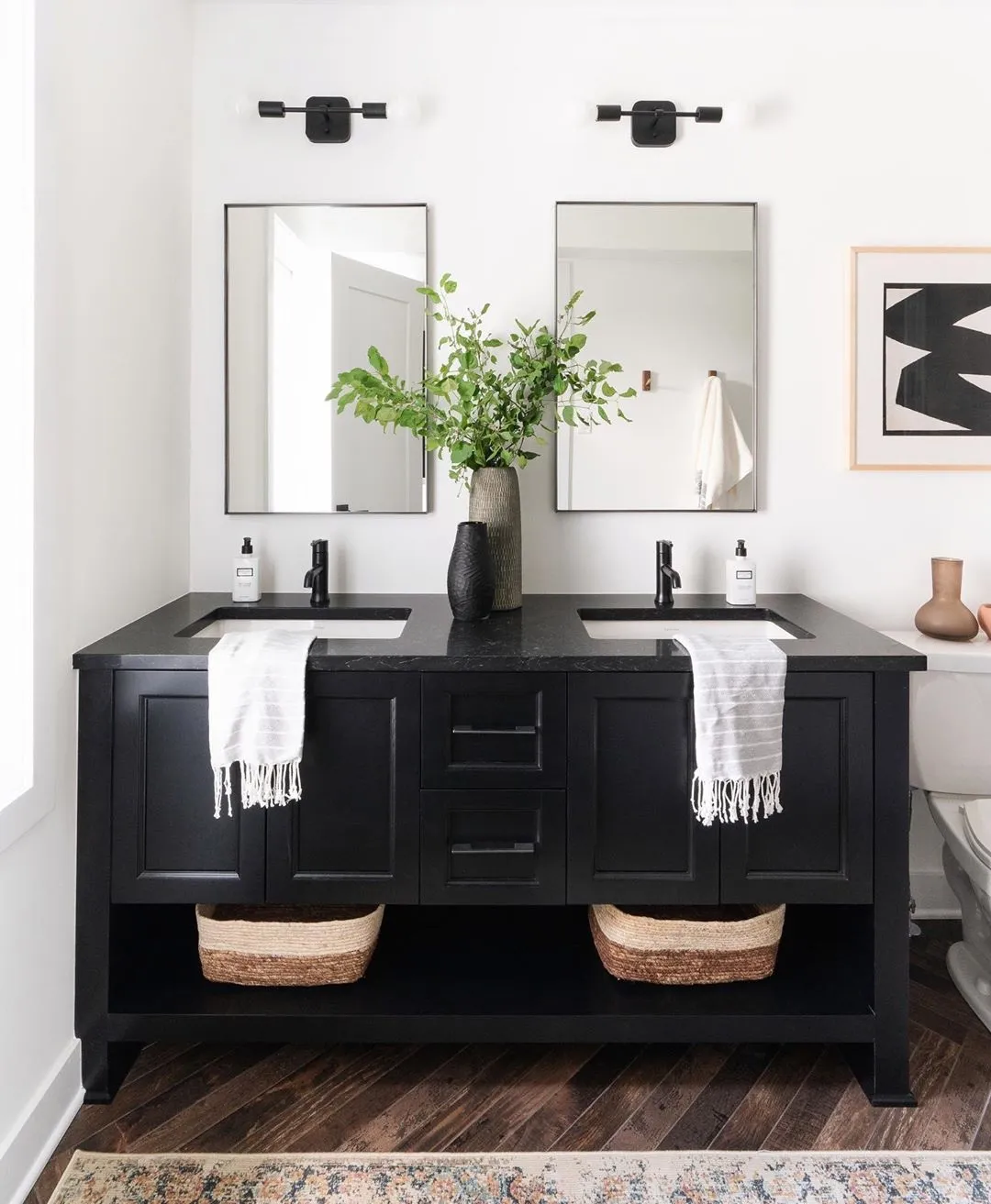 Lehet a feketével óvatosan, mégis nagyon karakteresen bánni! Elég hozzá egy hangsúlyos fürdőszobabútor, például egy mosdópult, és hozzá néhány, stílusban passzoló kiegészítő. Nem kell nagy dolgokra gondolni, egy fekete világítótest vagy egy kép a falon már elképesztő jól tud mutatni mellette.
