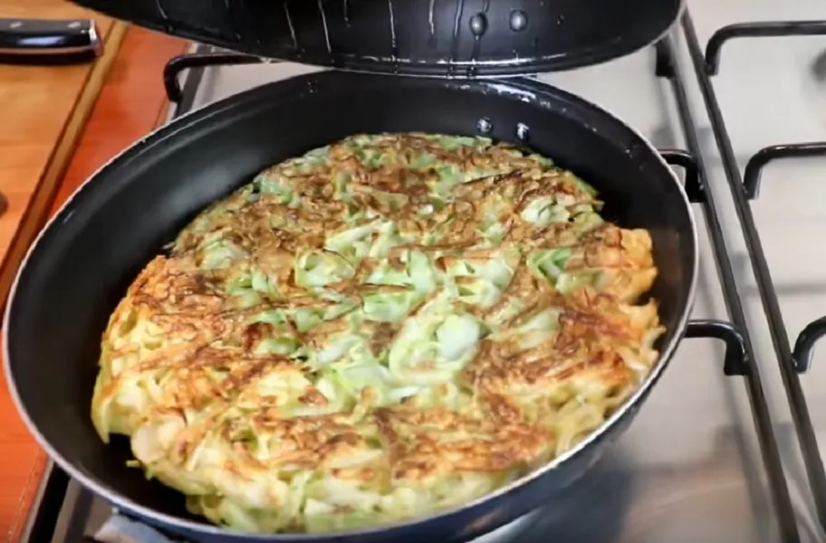 4. Egy serpenyőbe rakj egy kis olajat, melegítsd meg, majd a káposzta masszát, mint egy palacsintát helyezd bele. Egyengesd el.