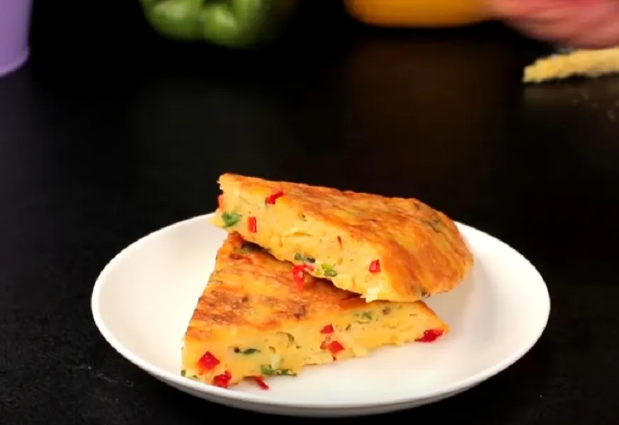 4. Melegítsd meg a tepsiben az olajat, és a masszát palacsinta formában terítsd ki benne, egyenletesen elosztva. Nagyjából 4 percen keresztül lefedve süsd meg. Majd fordítsd meg és süsd tovább.