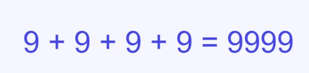 A helyes megfejtés nem más, mint az, hogy az egyenlőségjelet áthúzod egyetlen tollvonással. Úgy máris helytálló lesz az ábra. 9+9+9+9 ugyanis nem egyenlő 9999-cel.
