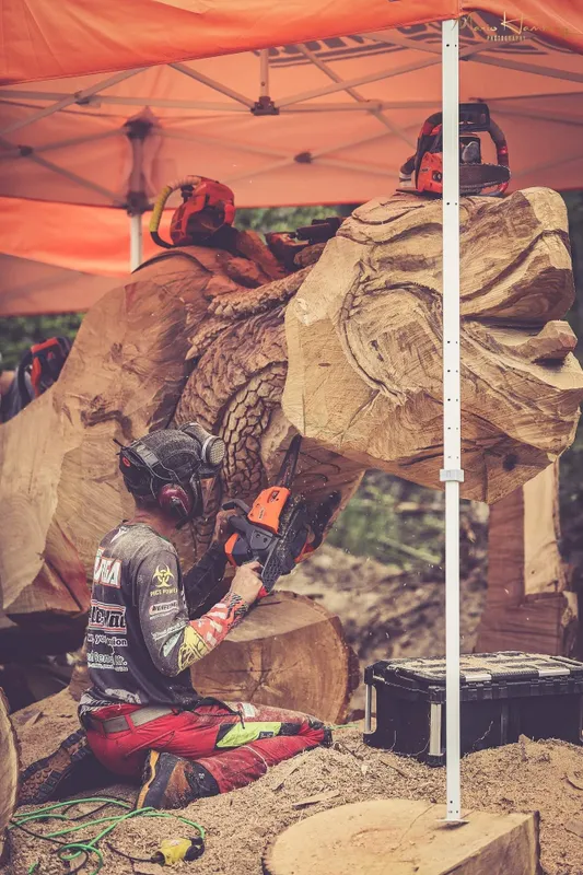 „Rá kellett jönnöm, hogy a sokkal több érzékem van bennem ahhoz, hogy bontsak. Korábban mindig összerakni, építeni próbáltam, de ahhoz nem volt igazi tehetségem. A kibontás egész más. Jön egy sugallat, aminek hatására meglátom, mi lapul a rönkben. Akkor fogom a fűrészt és lekapom a figuráról a fölösleget” magyarázza Norbert, aki villámgyorsan lett a láncfűrészes szobrászat mestere.