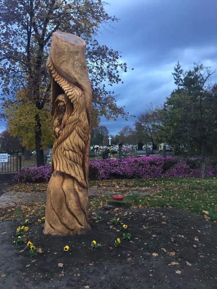 Szerencsére támogató volt, és miután végeztem, egész más megítélés alá került hóbortom a faluban.” Azóta, ha kivágandó vagy villámsújtott fa akad, mindig szólnak Norbinak. Inkább legyen szobor a rönkből, mint felhasogatott tűzifa. Így került a helyi temető elé egy igazán szívet melengető alkotás, egy szárnyaiba burkolózó angyal,