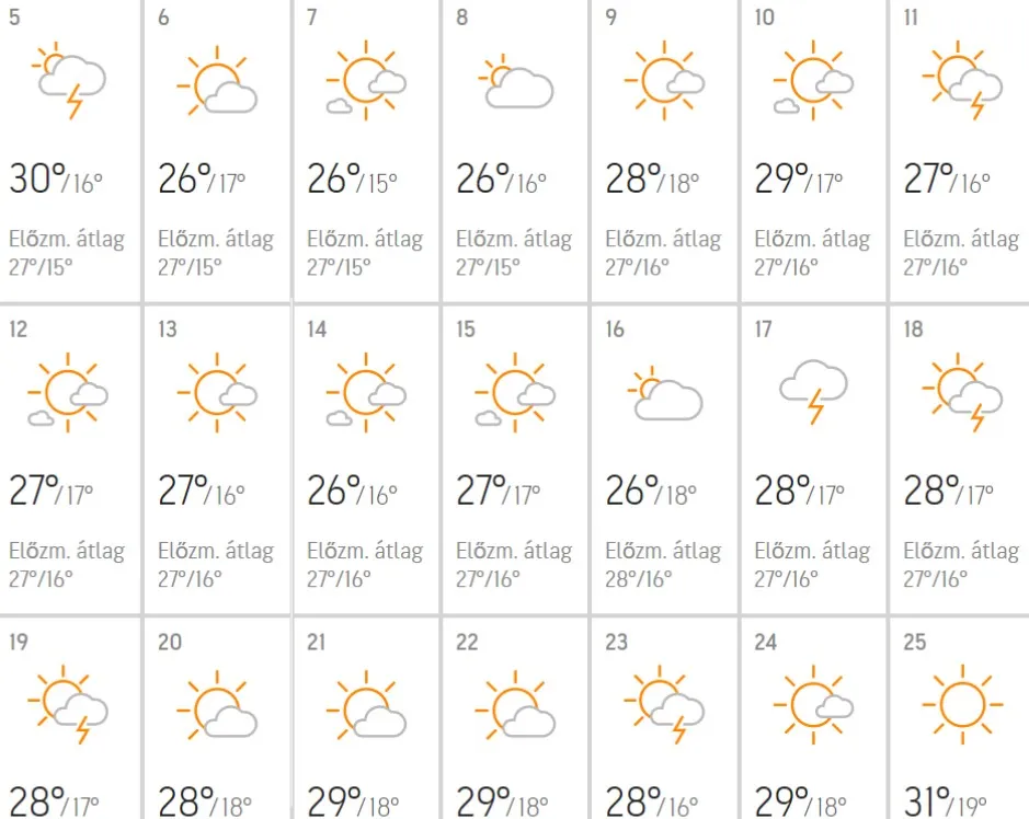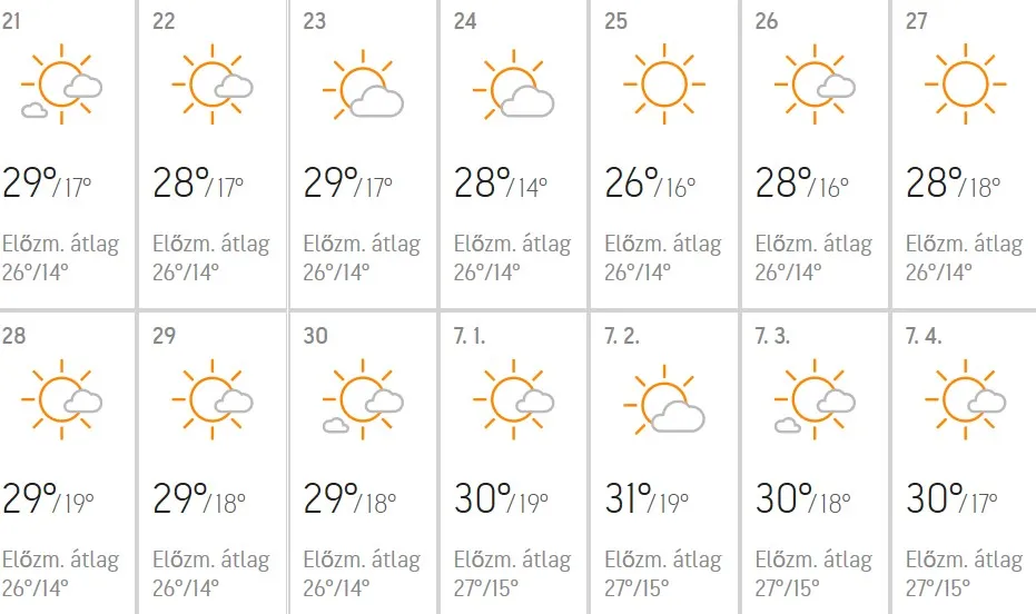 Furcsa módon az enyhülést előreláthatólag éppen július hozza majd el: mintha a két hónap helyet cserélt volna egymással. A kánikulát ígérő június vége után a nyár közepe kellemes, meleg, de kissé enyhébb időjárással vár minket, meglepően gyakori felhőátvonulásokkal, bár ritkán előforduló esővel.