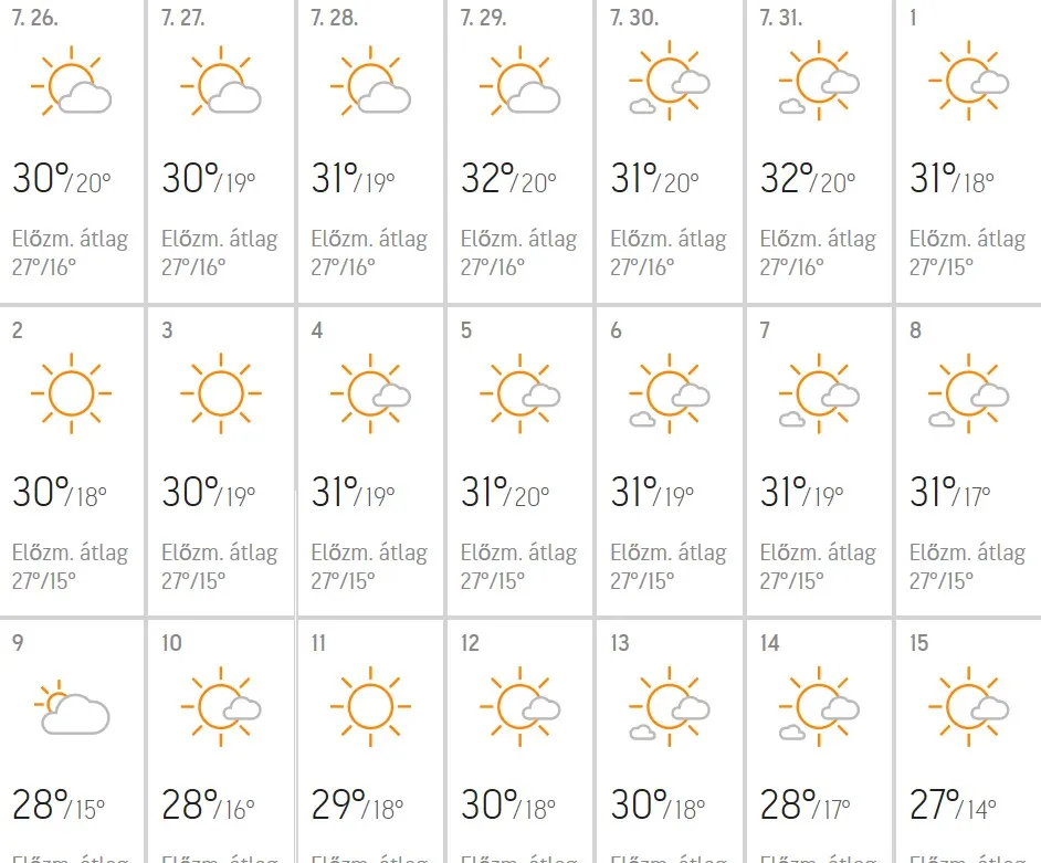 A hónap második felében viszont elkezd meredeken felfelé kúszni a hőmérő higanyszála, és igazi kánikula köszönt ránk. Nem lesz ritka a 30 fok körüli hőmérséklet, a nappalok pedig többnyire teljesen derűsek lesznek.