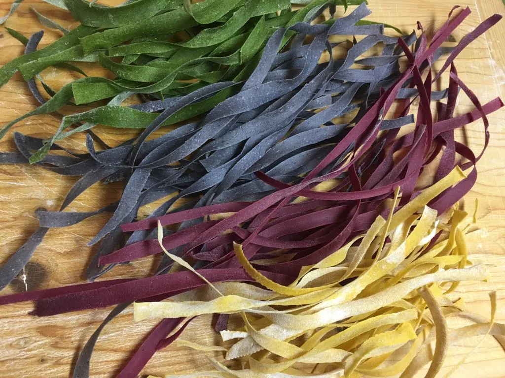 Elképesztő színekben pompáznak a Tata környékén élő Elek Zsanett saját készítésű házi tésztái. Lila, zöld, fekete, narancs, piros, sárga és ki tudja még hányféle meghökkentő árnyalatban kelletik magukat, méghozzá a legkülönösebb formákban.